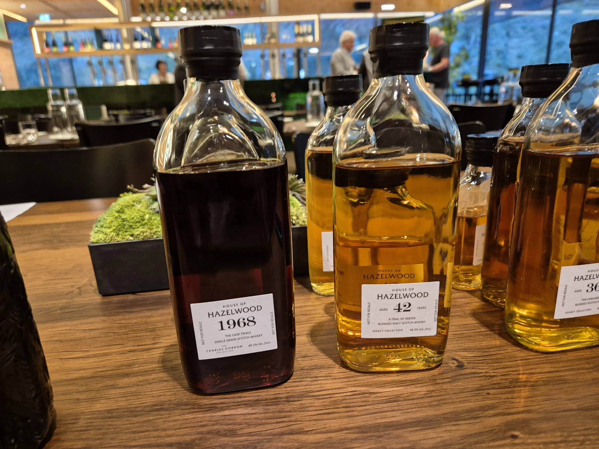 Die Gläser werden gefüllt und die Atmosphäre im Saal verändert sich. Jeder der angebotenen Whiskys erzählt ein Kapitel aus der Geschichte des House of Hazelwood. Es ist nicht nur eine Verkostung, sondern ein Dialog mit Fässern, die jahrzehntelang gereift sind, mit Jahrgängen, die nur wenige jemals in Flaschen abgefüllt gesehen haben.