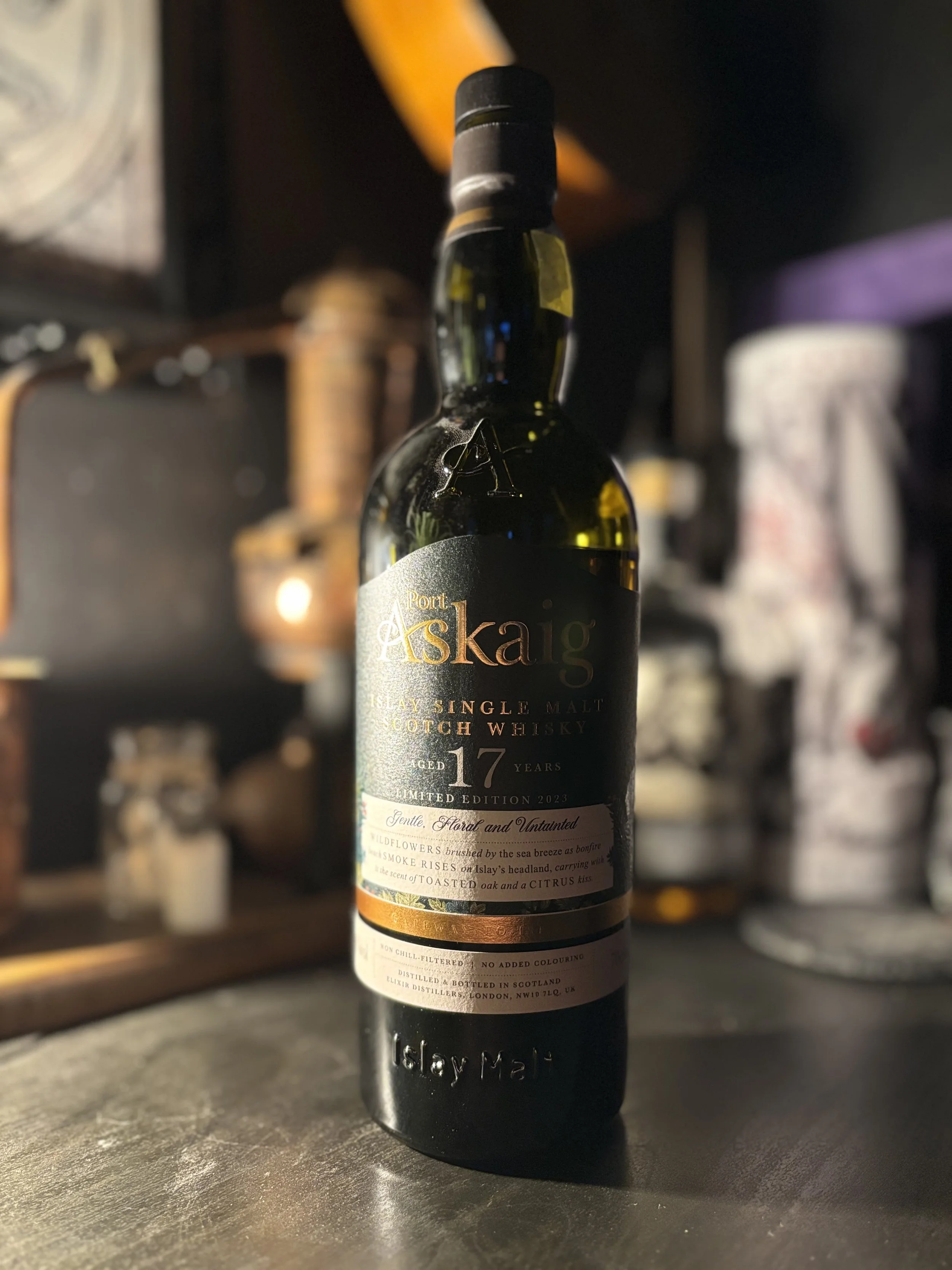 Il Port Askaig 17 anni è stato uno di quei whisky che si legano a un momento preciso, in questo caso un compleanno. Fumoso, medicinale, con richiami quasi montani: un Islay che non ha bisogno di presentazioni.