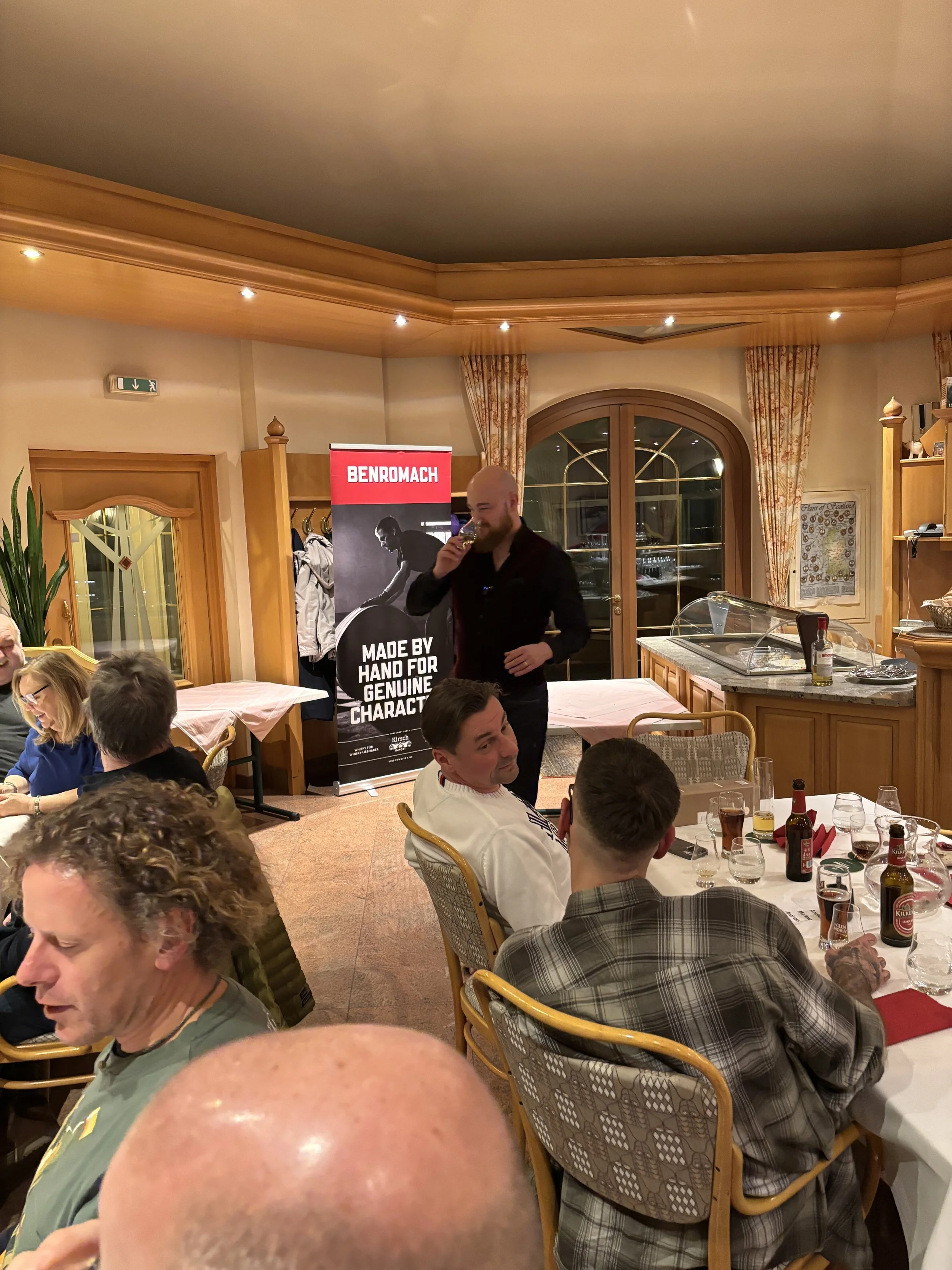 L’incontro si è svolto dal vivo al Claymore Whisky Club di Innsbruck, in un’atmosfera intima e appassionata, perfetta per ascoltare racconti di magazzini antichi, botti leggendarie e scelte produttive controcorrente.