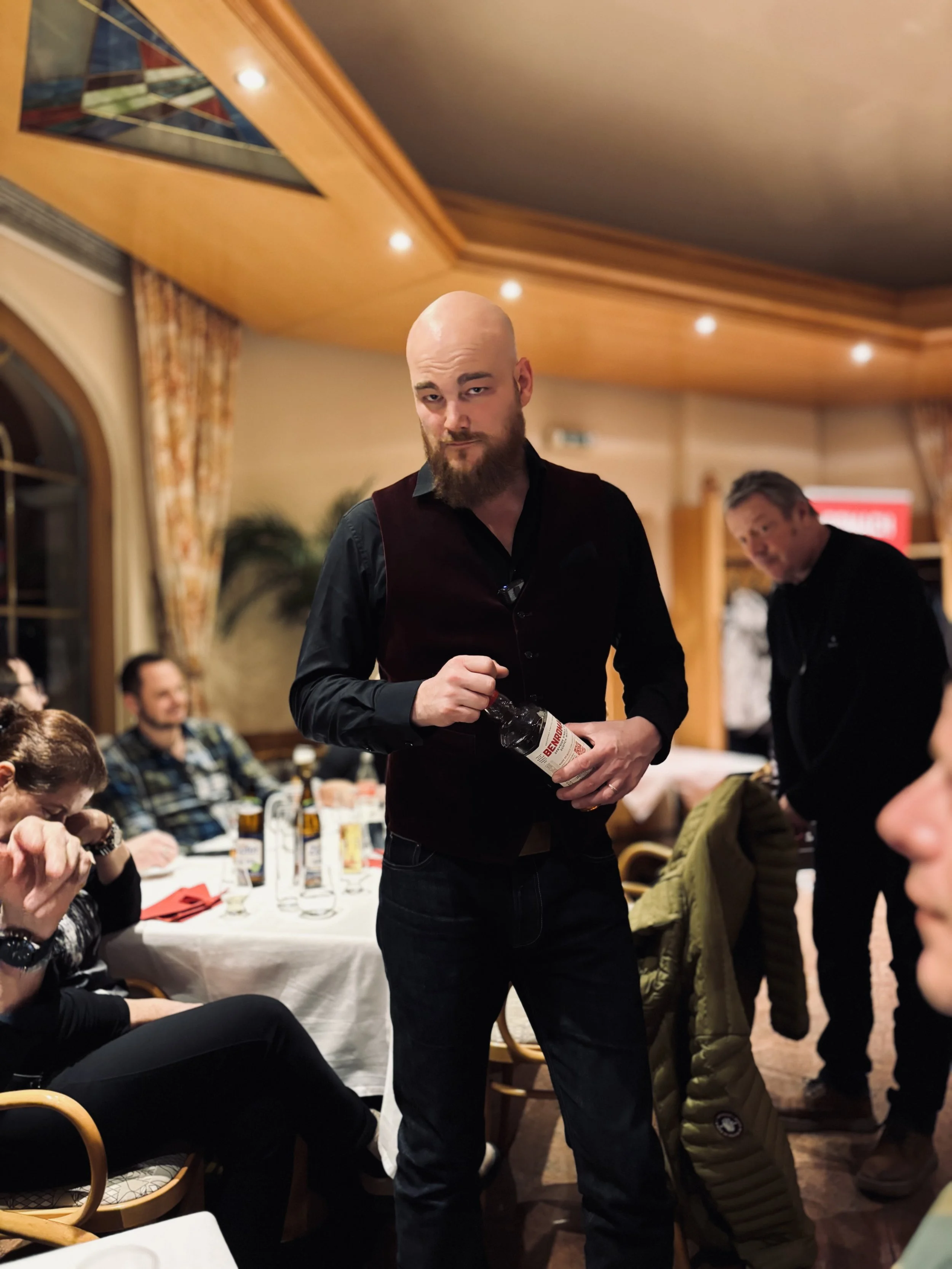 The event took place live at the Claymore Whisky Club in Innsbruck, in an intimate and passionate atmosphere, perfect for listening to tales of ancient warehouses, legendary casks, and unconventional production choices.