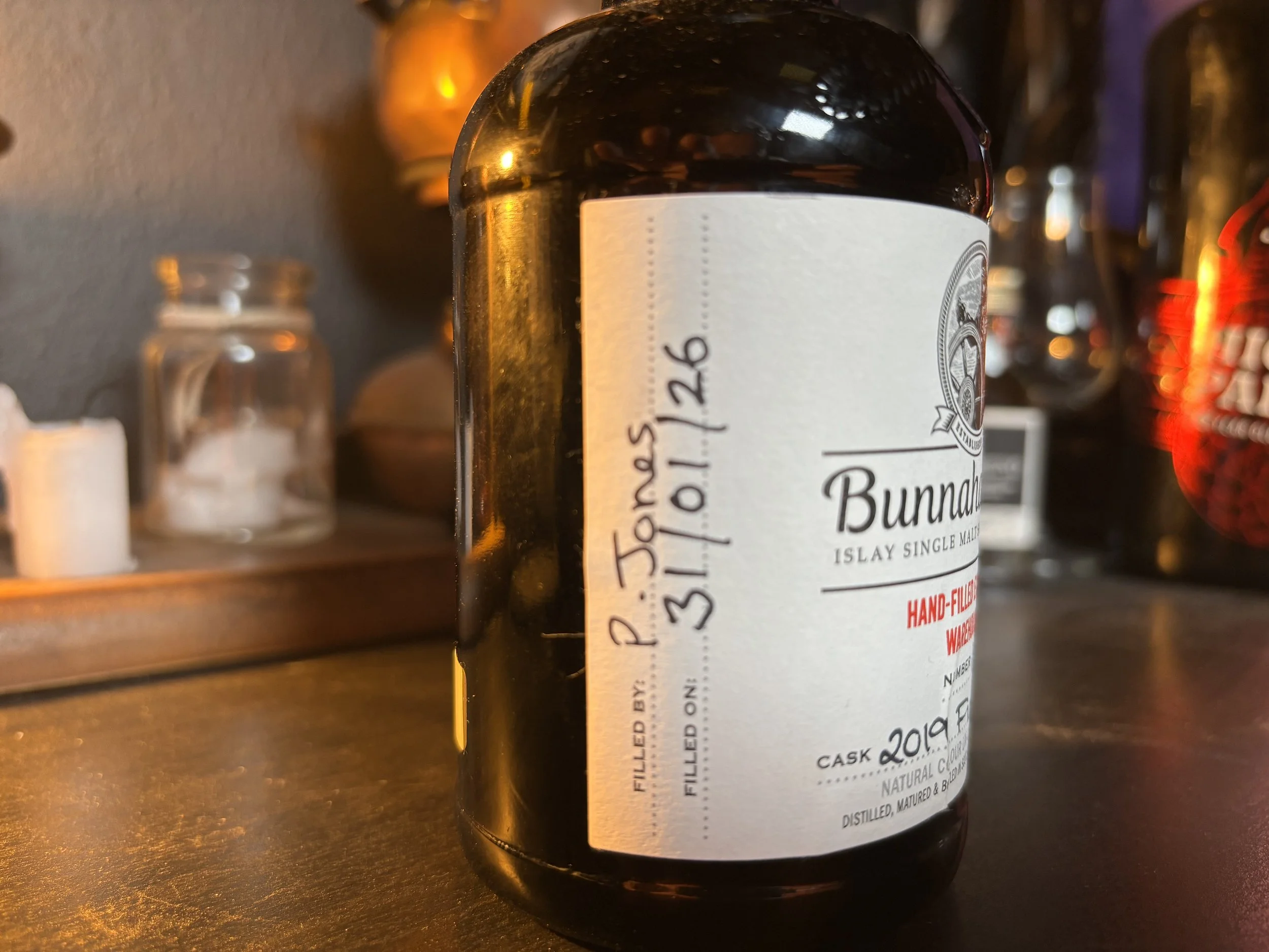 Questa bottiglia di Bunnahabhain, al di là del suo contenuto, rappresenta esattamente questo. Un legame tra persone che parlano la stessa lingua, anche senza bisogno di troppe parole. La lingua delle degustazioni fatte insieme, delle discussioni infinite su una nota salmastra o su una sfumatura di sherry, dei viaggi raccontati con gli occhi ancora pieni di vento e torba.